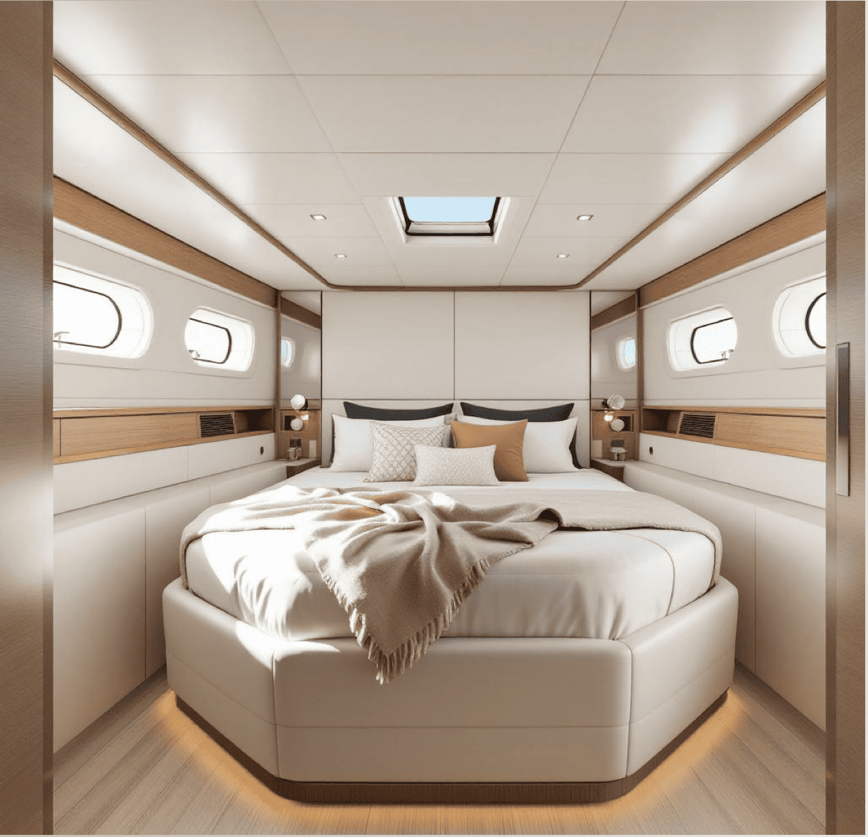 Akıllı iç mekân planlamasıyla geniş ve fonksiyonel yaşam alanlarına sahip AFTER 14; salon, kabinler ve sosyal alanların dengeli dağılımıyla konforlu bir deniz deneyimi sağlar. İç donanım ve malzeme seçenekleri, yat sahibinin zevkine göre kişisel tercihlerle zenginleştirilebilir.