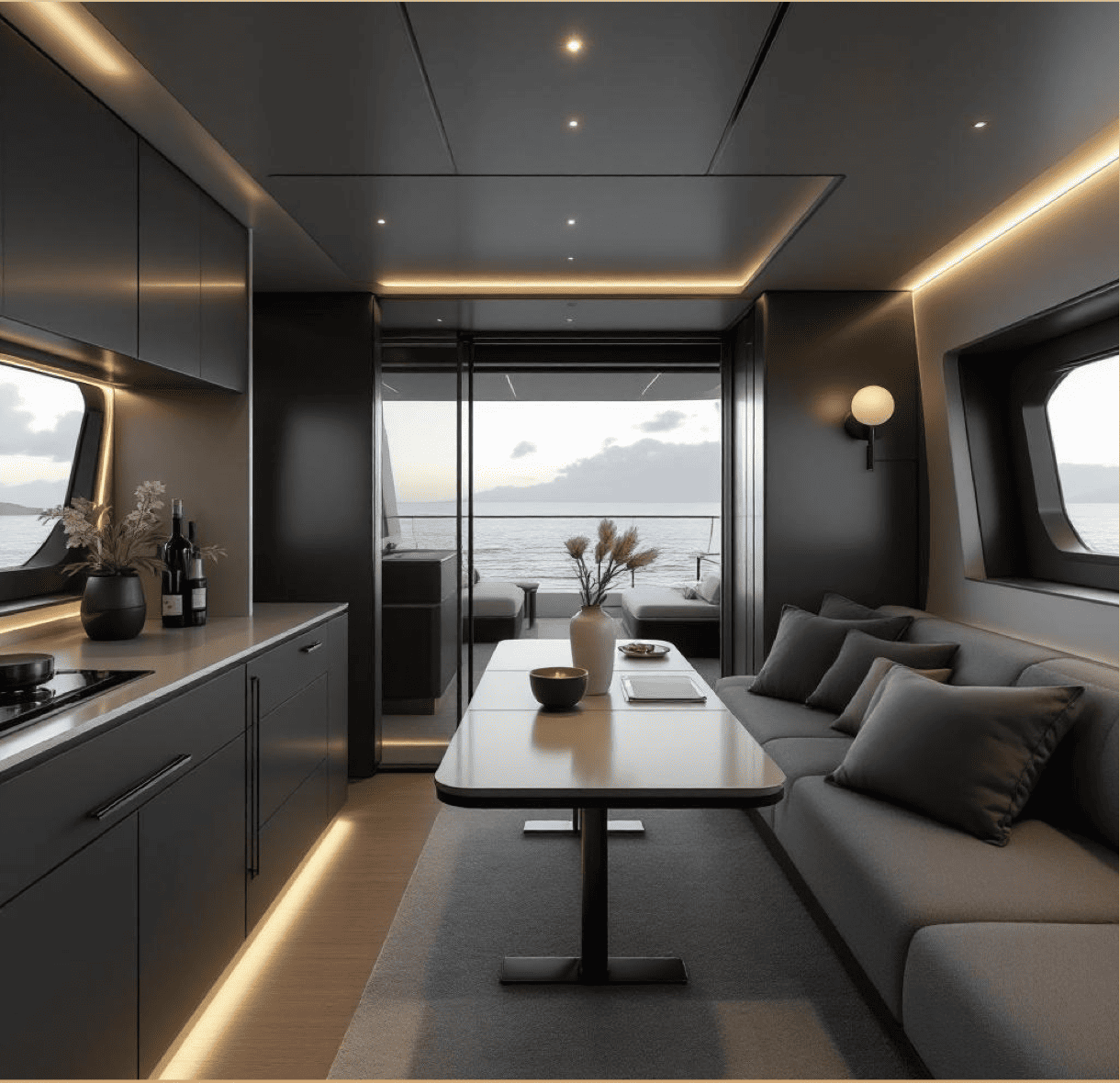 Modern dış tasarım çizgileriyle dışa dönük karakterini vurgulayan SURVIVOR 11, geniş yaşam alanları ve fonksiyonel iç mekân düzeniyle hem konforlu hem de pratik bir yat deneyimi sağlamak üzere geliştirilmiştir. İç donanım ve malzeme seçenekleri, yat sahibinin tercihlerine göre özgün şekilde kişiselleştirilebilir.