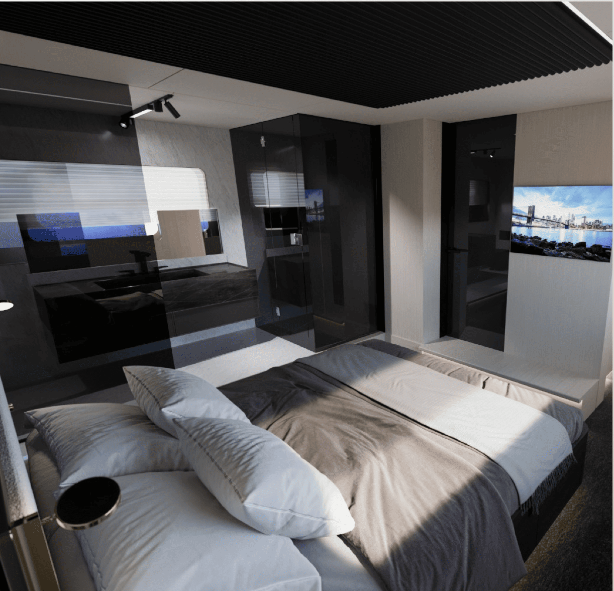 Modelin iç mekân düzeni, ferah yaşam alanları, ergonomik kabinler ve sosyal bölümlerle deniz üzerindeki konforu maksimuma taşır. Salon ve kabin planlaması, kullanıcı ihtiyaçlarına göre kişiselleştirilebilir; malzeme ve donanım seçenekleri yat sahibinin stiline uygun şekilde seçilebilir. Böylece THERAPY 62, yalnızca bir yat değil, deniz üzerinde özel yaşam alanı deneyimi sunar.